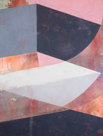 Michael Miller’s work explores texture, the tension between transparency and opacity, and spatial ambiguity. It raises questions about truth vs. deception, revelation vs. concealment, and the nature of history and memory. His visual language often references camouflage, including early 20th-century “dazzle” ship patterns.